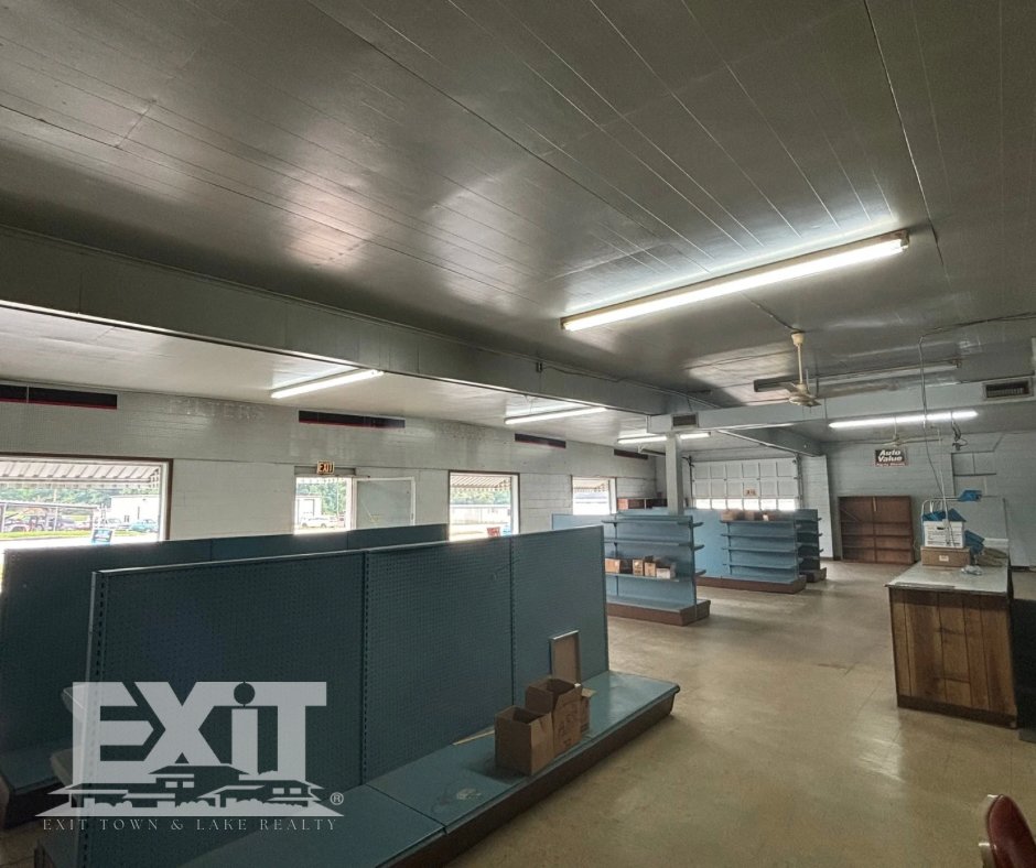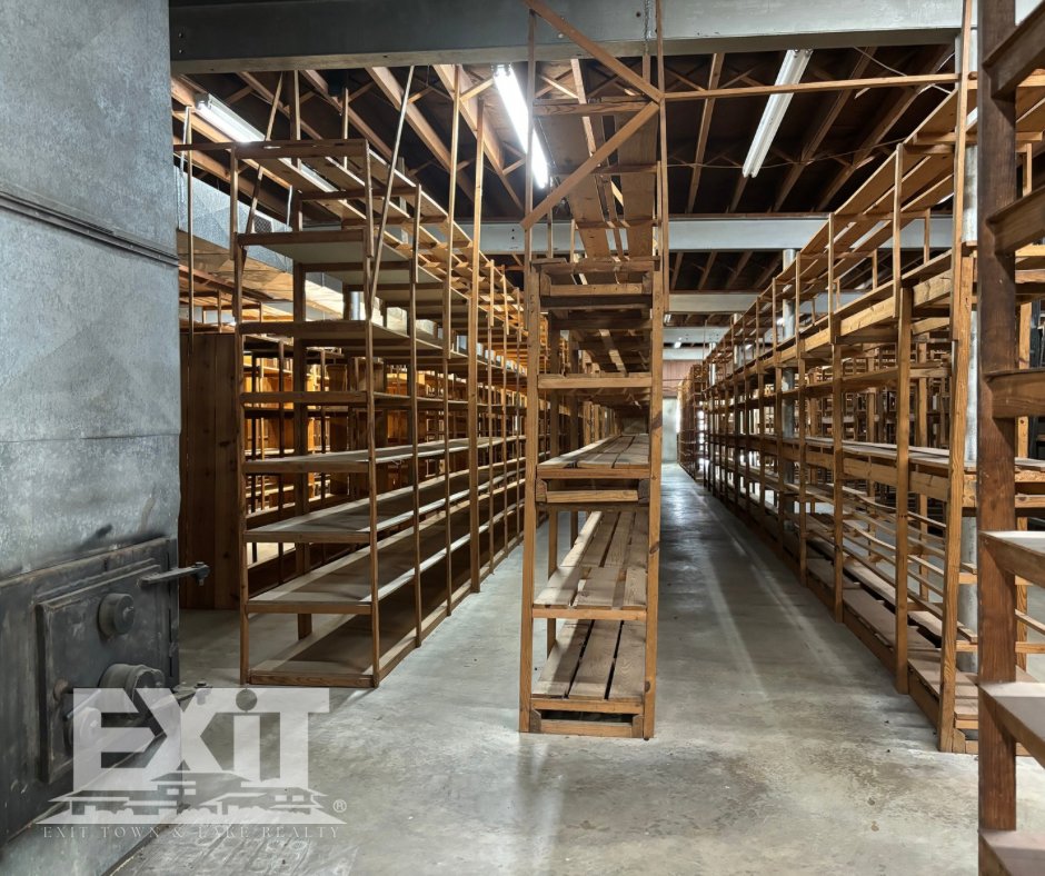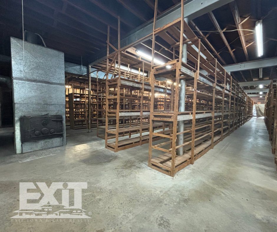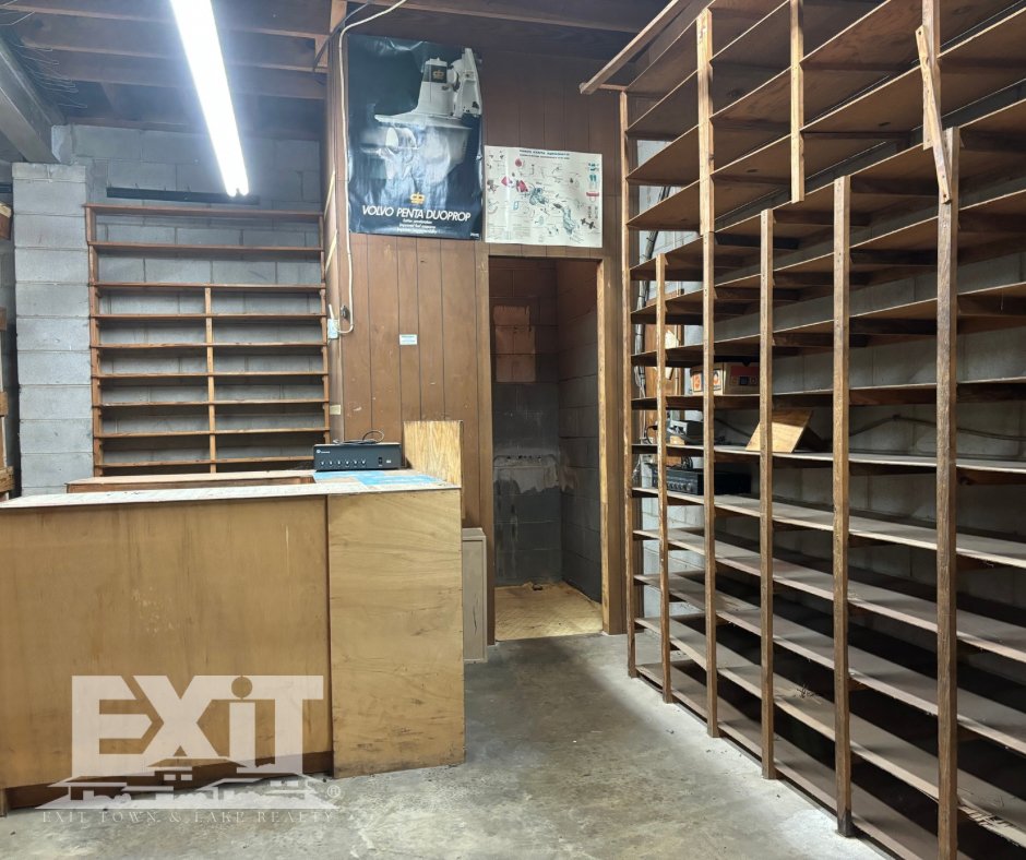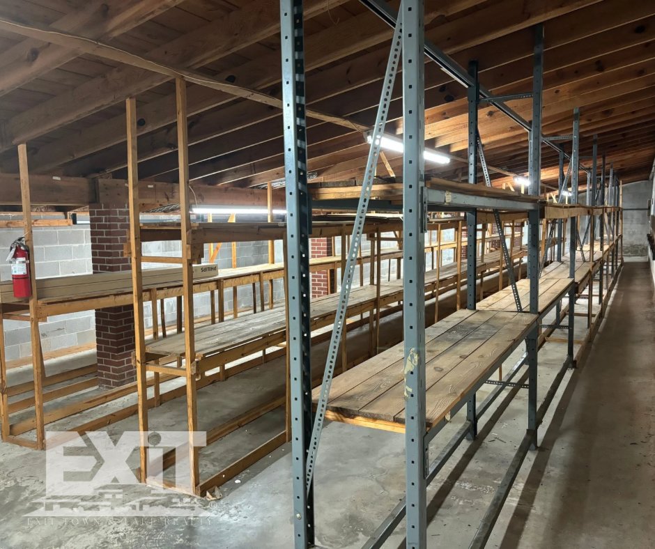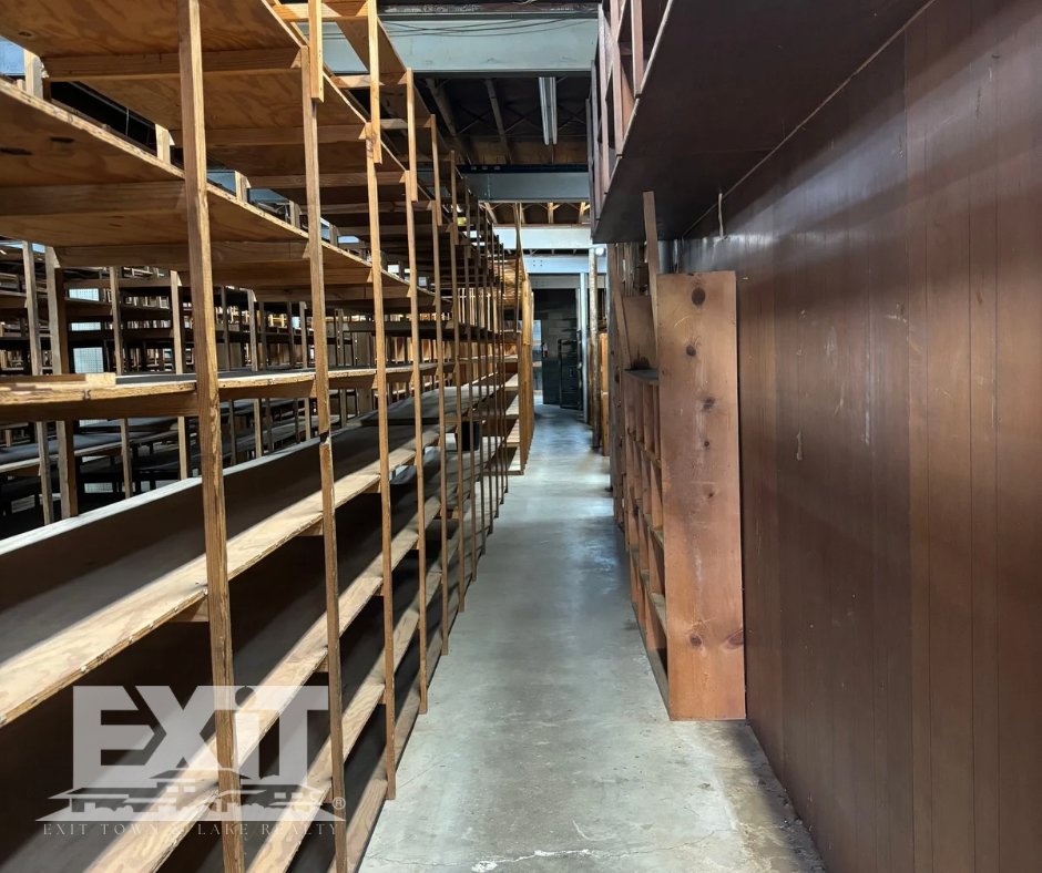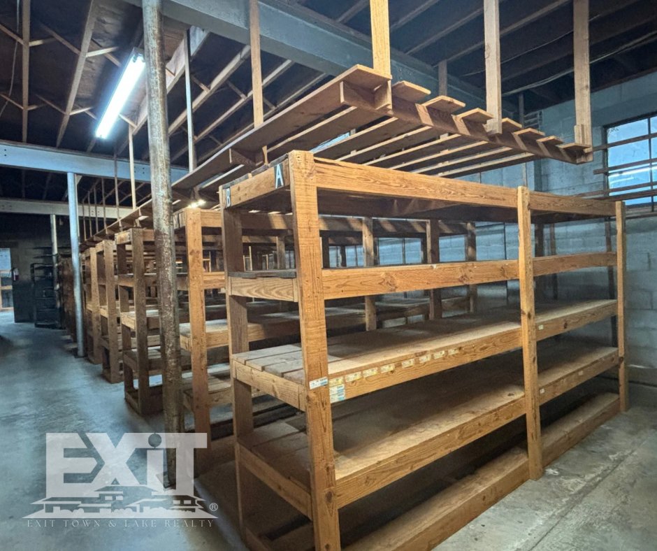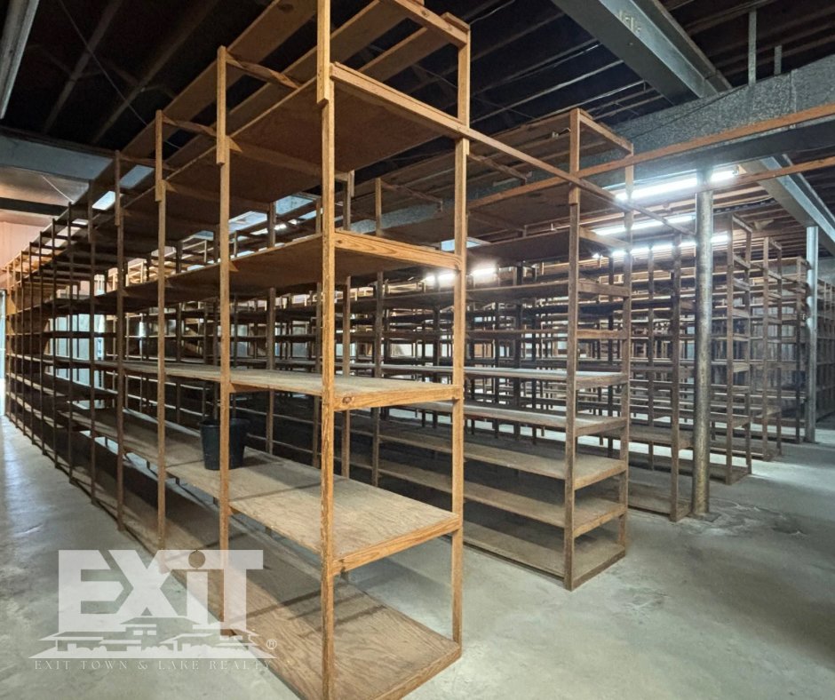 Discover the perfect location for your business in this expansive commercial building, designed to cater to a variety of needs. The highlight of this property is the vast storage area, featuring rows upon rows of sturdy shelves, ideal for organizing large inventories or housing extensive stock. This space ensures that all your storage requirements are met with ease and efficiency.